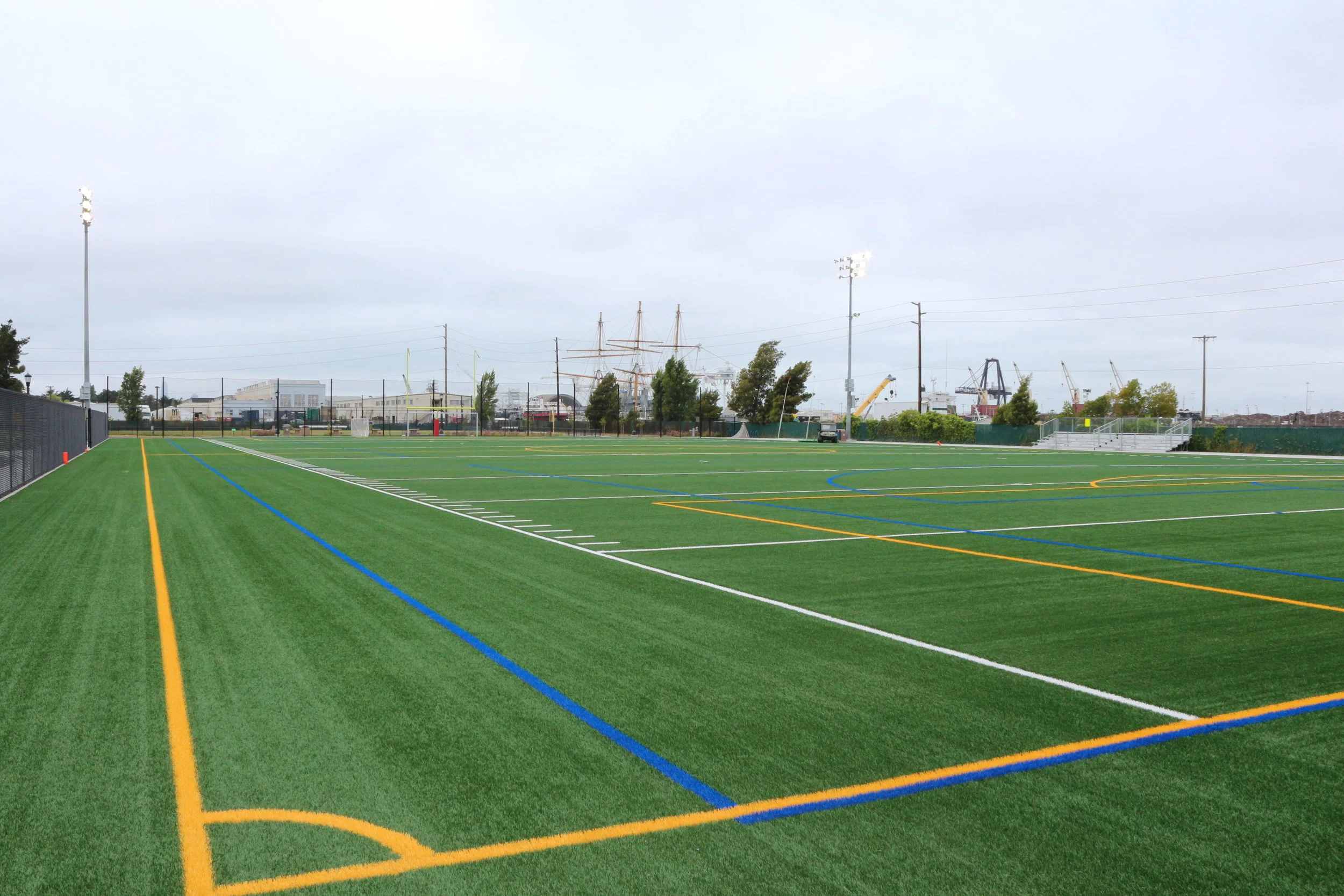 Outdoor turf field with lights