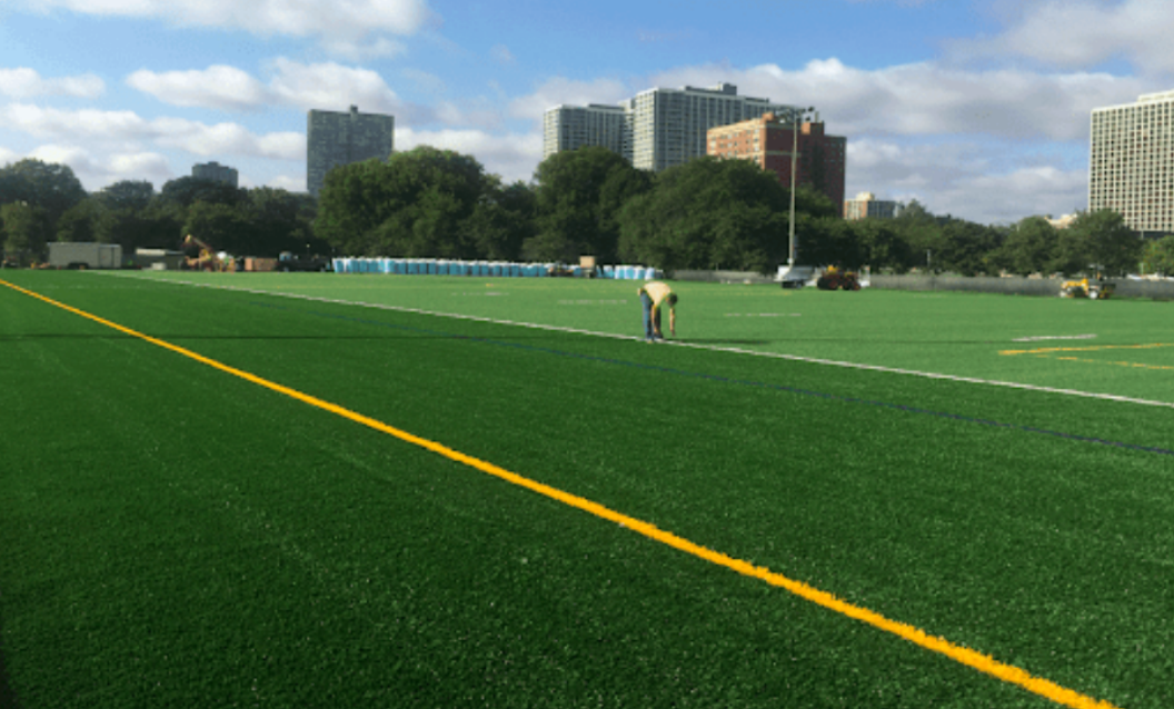 The Pasteur Park soccer field has been fully renovated by the Chicago Fire Soccer Club and is a great spot to play with lights!