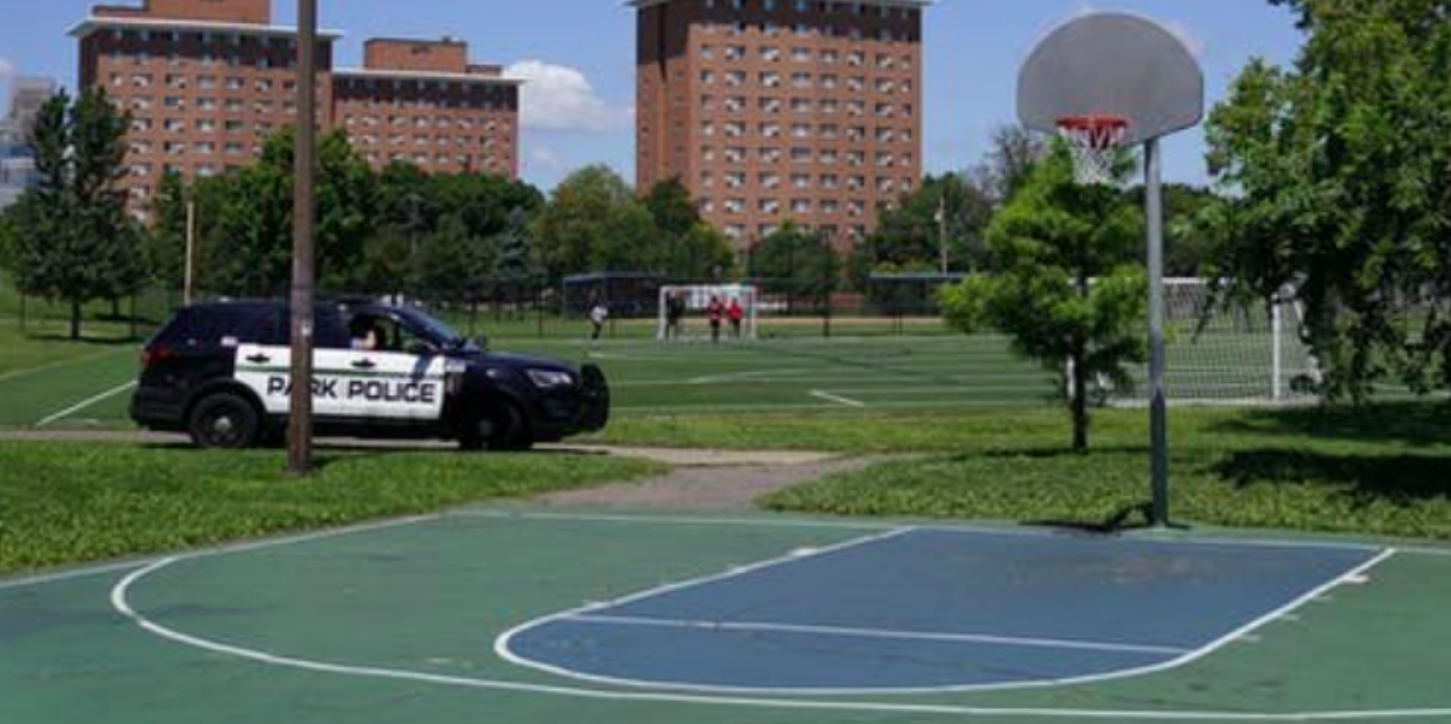 Check out the basketball court at Bethune Park! This park has a dope view of the Minneapolis City skyline to enjoy while hooping.