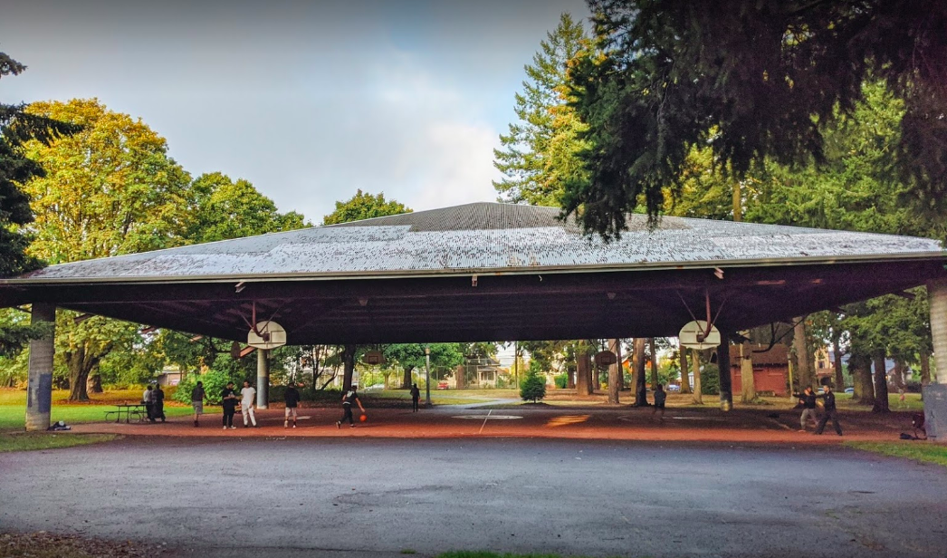 Check out the basketball court at the Multnomah Arts Center! The court is fully covered and the perfect spot to play during the rainy season.
